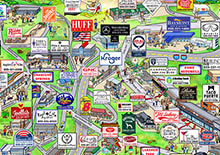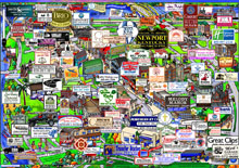 The material provided in this website is for informational purposes only. The creator of this interactive graphic map does not endorse or warrant any of the businesses or organizations listed or portrayed in this grapic. Commemorative Maps LLC is not responsible for the information contained in each business or organization's web page or website.